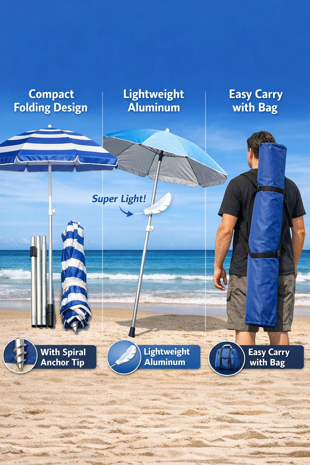 আমরা নিম্নলিখিত ধরনের থেকে নির্বাচন করার পরামর্শ দিই সৈকত ছাতা বিশেষভাবে বহনযোগ্যতার জন্য ডিজাইন করা হয়েছে: