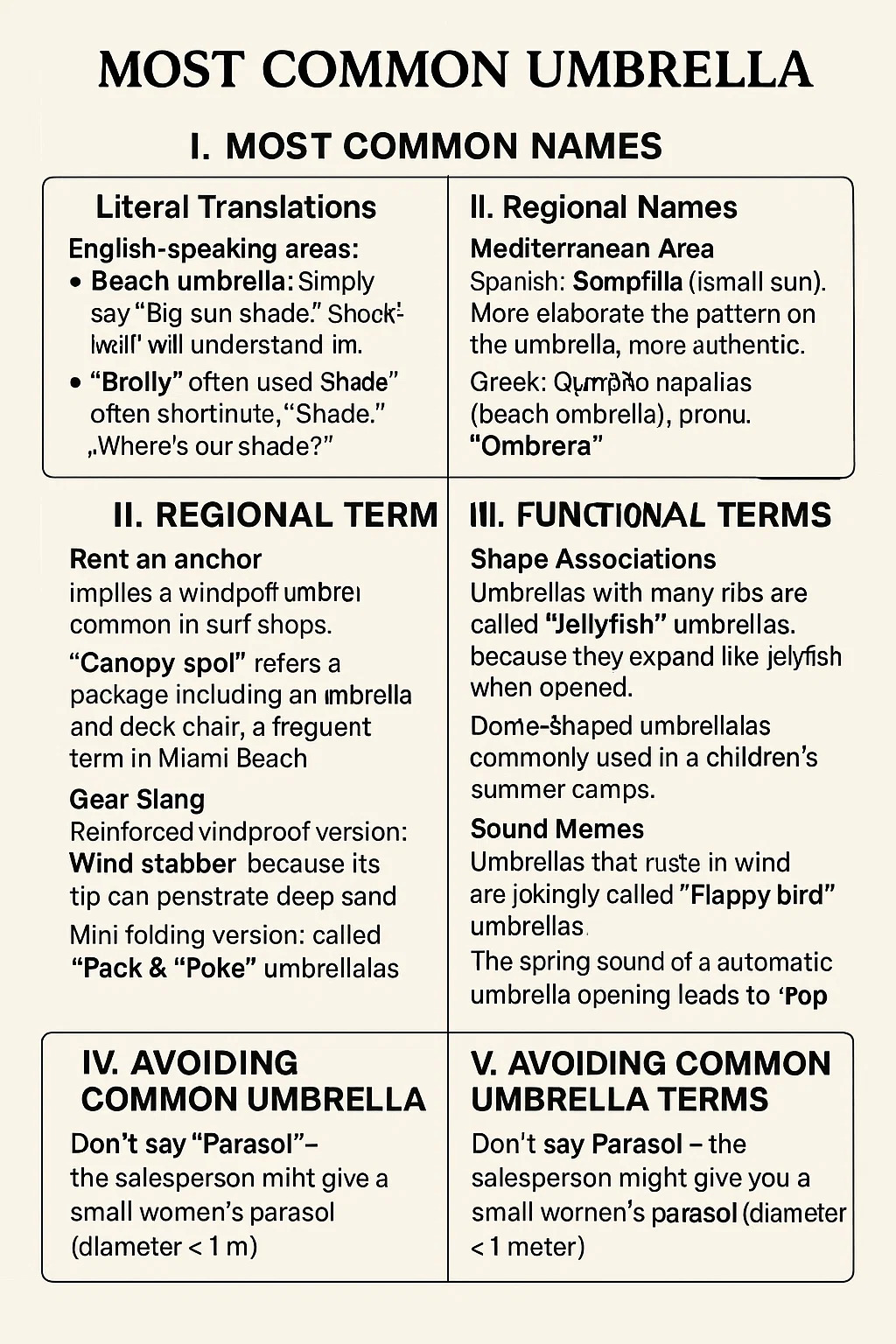 ইংরেজি-ভাষী এলাকা: শুধু বলুন "সৈকত ছাতা।" দোকানদাররা তখনই বুঝতে পারবে।